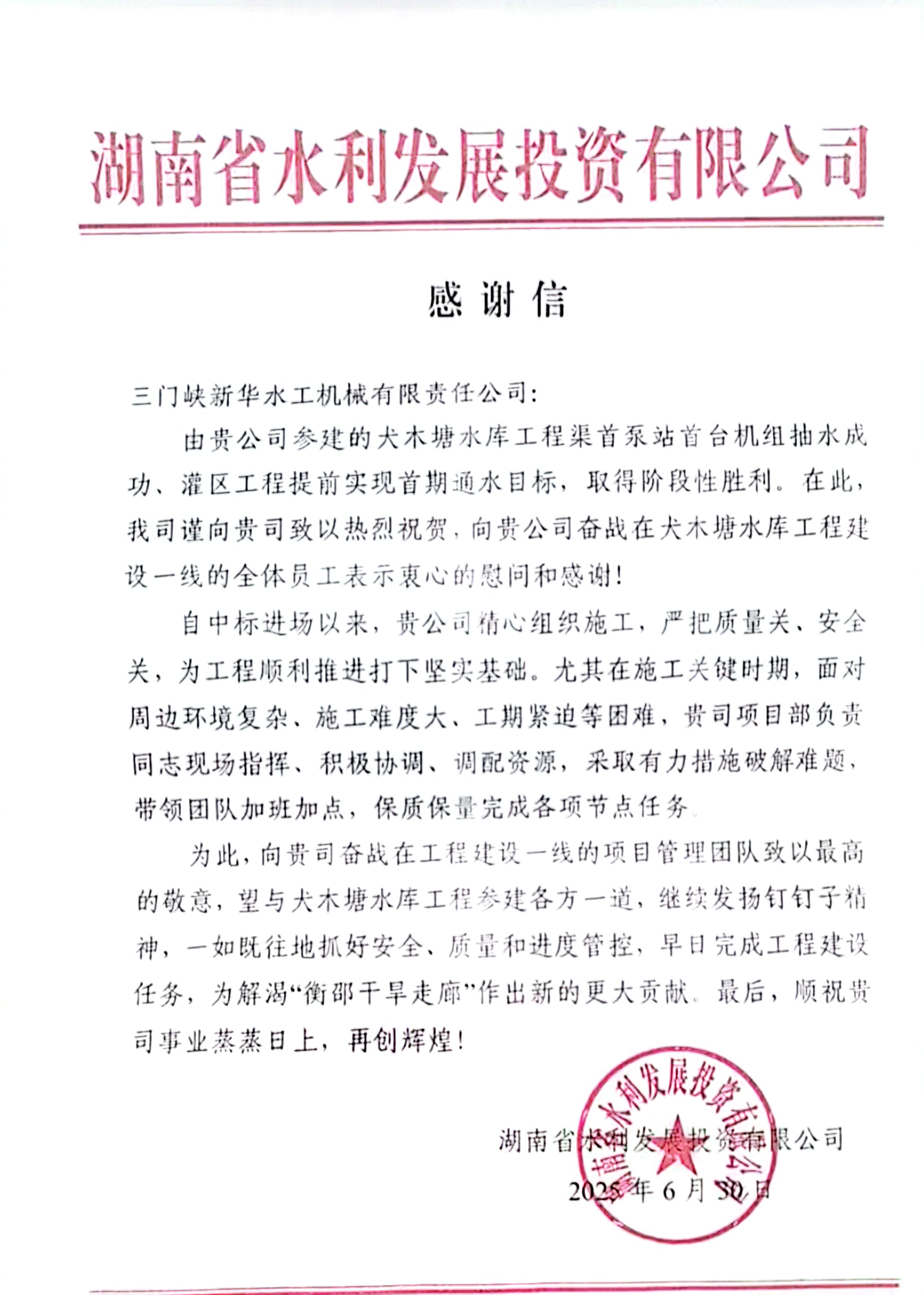 湖南資水犬木塘水庫工程,作為新中國成立以來湖南投資最大的單體水利工程,具有極其重要的戰(zhàn)略意義。它是緩解衡邵干旱走廊水資源短缺問題的骨干水利工程,涵蓋樞紐工程和灌區(qū)工程兩大部分。同時,該項目在國內(nèi)大型灌區(qū)中首次采用大功率直流電機(7.5KW)、風光互補供電及儲能等先進技術(shù),有著突出的示范效應和廣闊的市場空間。三門峽新華水工機械有限責任公司在此次項目中承擔關(guān)鍵核心設(shè)備供給,不僅是一次業(yè)務拓展,也是創(chuàng)新驅(qū)動、培育新質(zhì)生產(chǎn)力的一次具體實踐,更是履行社會責任的體現(xiàn)。項目建成后,將極大改善衡邵干旱走廊的缺水現(xiàn)狀,促進當?shù)剞r(nóng)業(yè)發(fā)展,助力鄉(xiāng)村振興,為區(qū)域經(jīng)濟社會可持續(xù)發(fā)展注入強大動力。未來,三門峽新華將繼續(xù)秉持專業(yè)、創(chuàng)新、負責的態(tài)度,投身更多水利工程建設(shè),為國家水利事業(yè)發(fā)展貢獻更多力量。